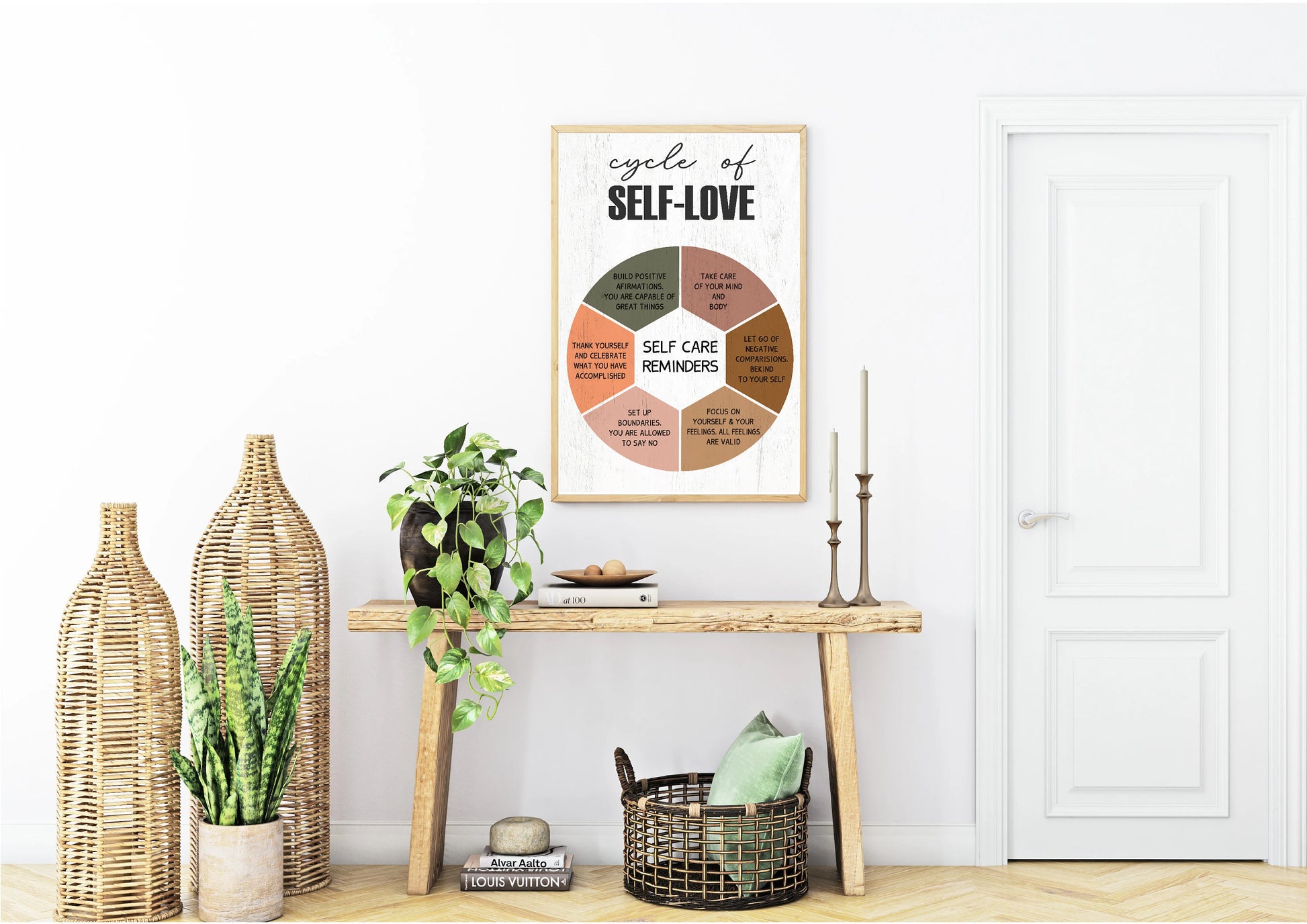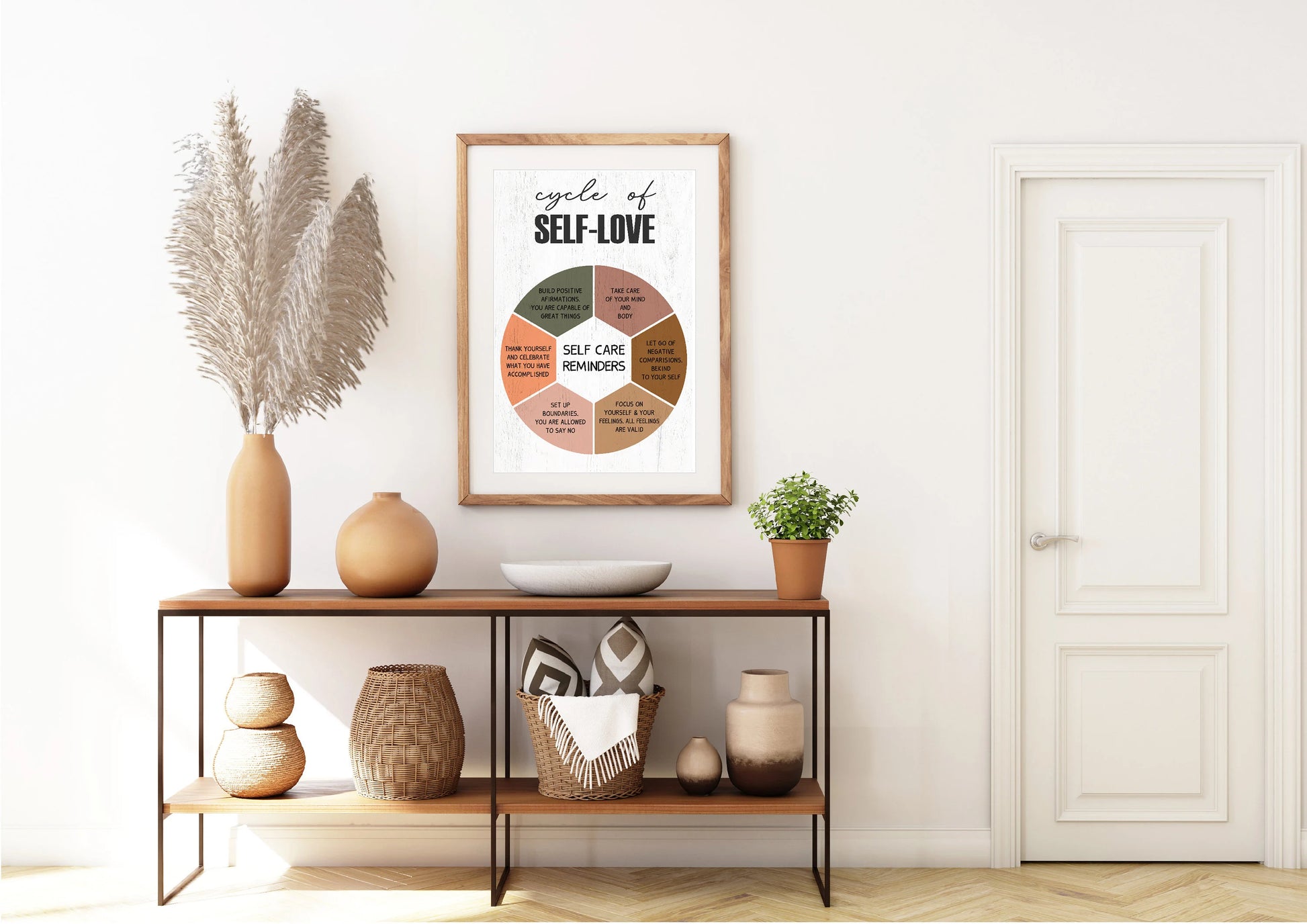 A calming and empowering print for self-care routines, mental wellbeing spaces, or as a thoughtful gift for someone learning to prioritise themselves.