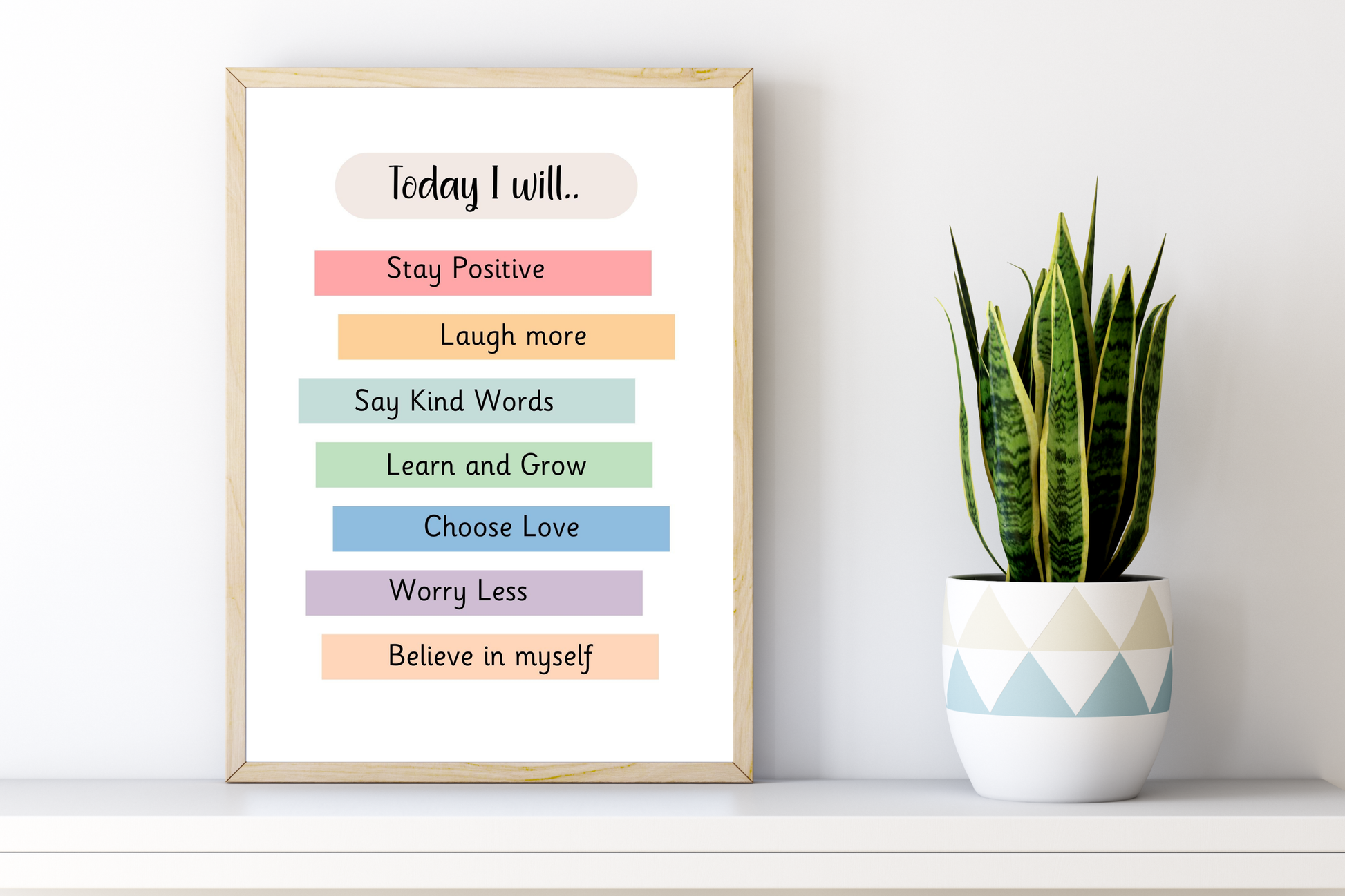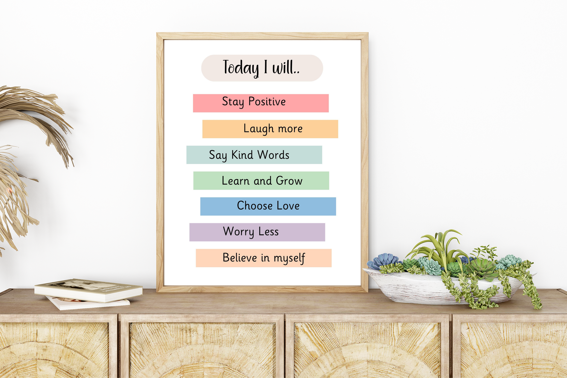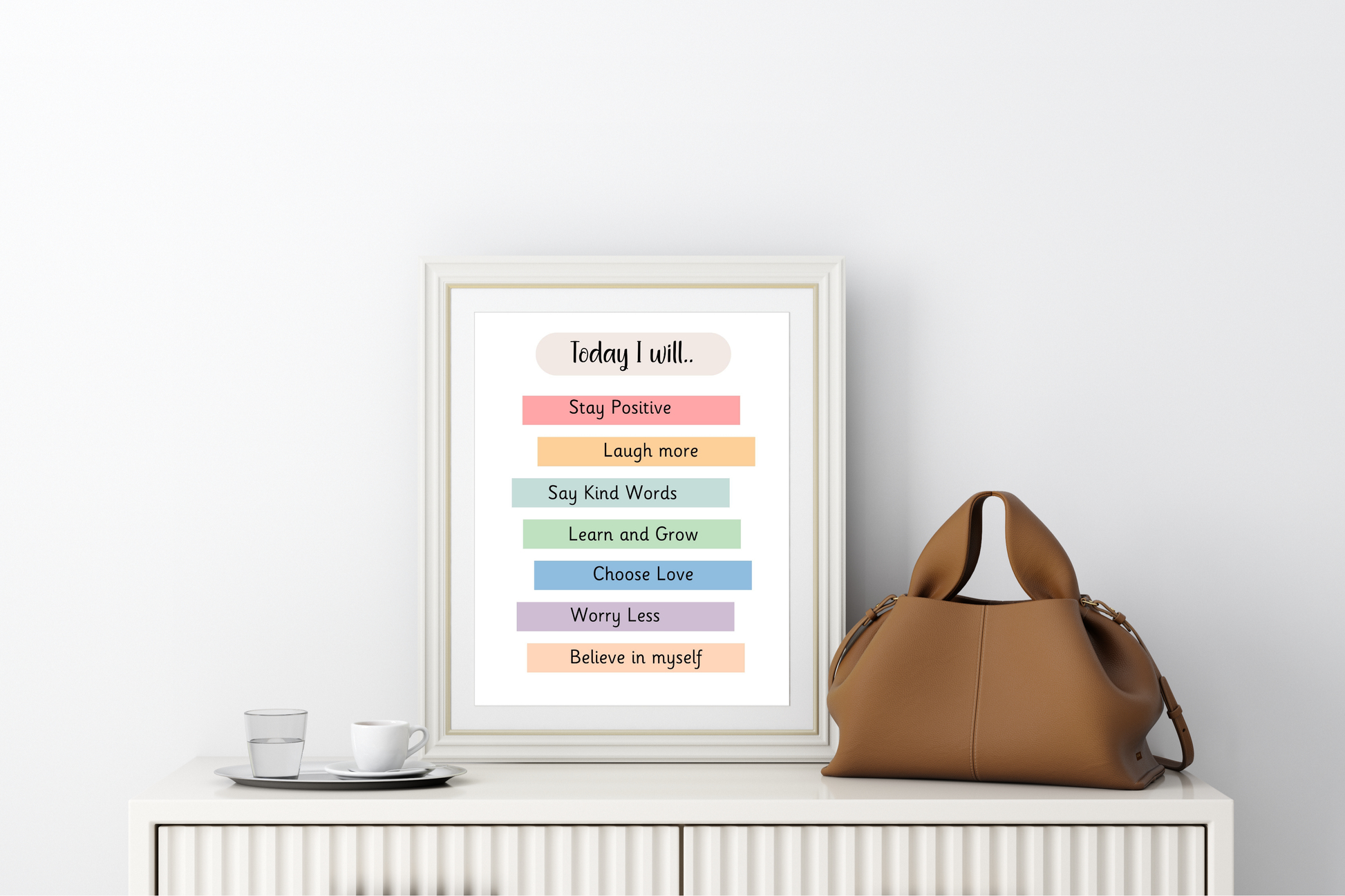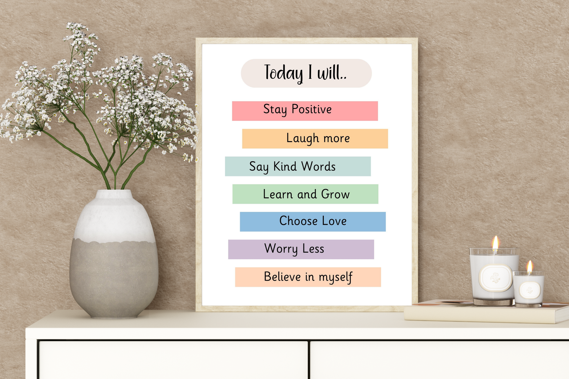 Start each day with intention and positivity with our “Today I Will” Mental Health Affirmation Print — a simple yet powerful design created to encourage self-care, motivation, and a healthy mindset. Perfect for bedrooms, offices, therapy spaces, or anywhere you need a daily reminder to be kind to yourself.
